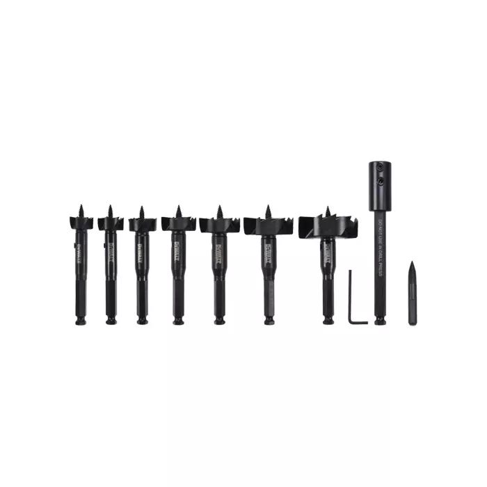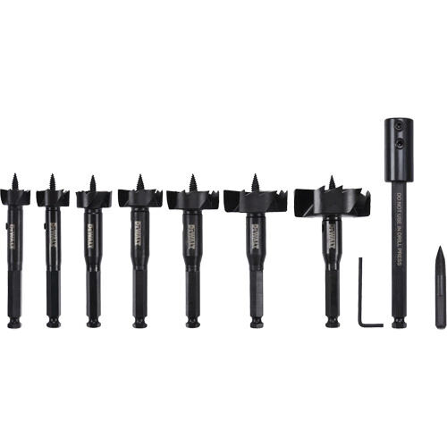 - Includes: 1", 1-1/8", 1-1/4", 1-1/2", 1-3/4", 2-1/8", 2-9/16" Drill bits, 5-1/2" Extension