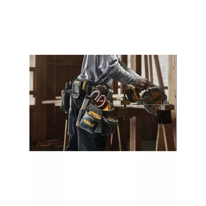 - Store various tools and accessories with 26 pockets, two hammer loops, and a dedicated holster for your tape measure
