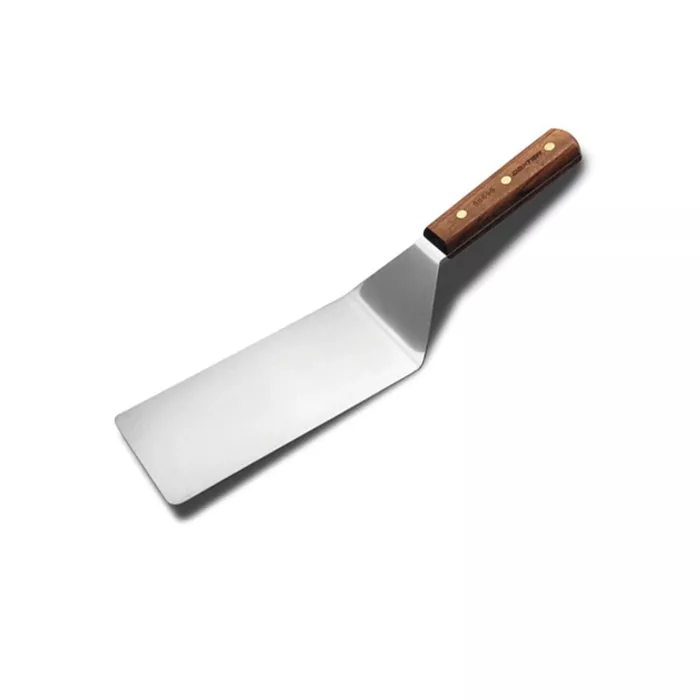 High-carbon steel, with an individually ground and honed edge. Handle is secured to the blade with brass compression rivets.