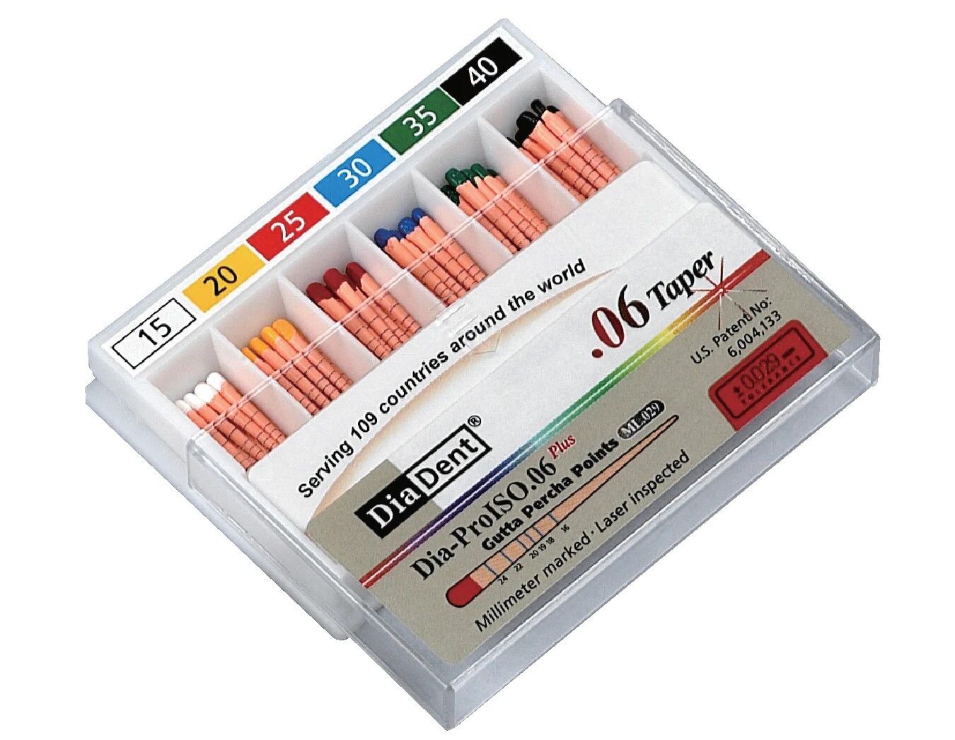 Dia-ProISO GT Gutta Percha is the mm-Marked version of Dia-ISOGT Gutta Percha. These points are uniformly tapered to match .06 tapered instruments. Dia-Pro-ISO GT points come in a convenient one-hand slide-open lid packaging.