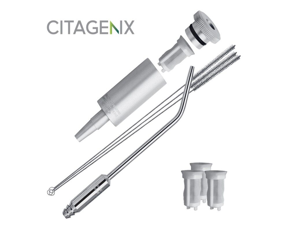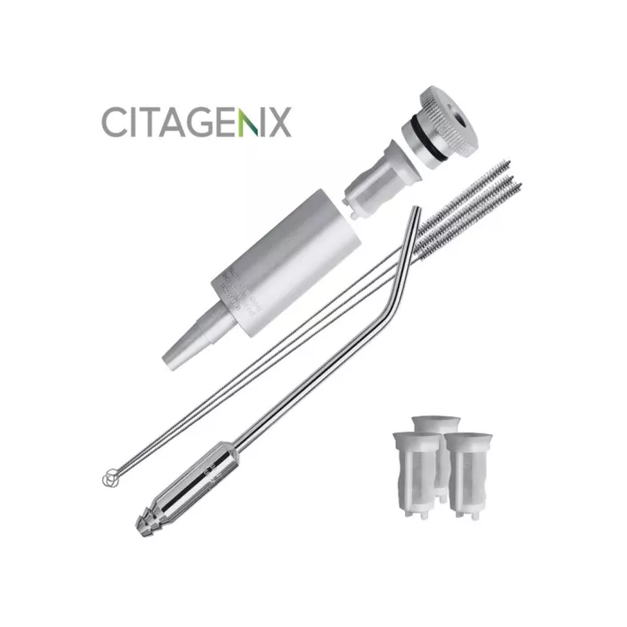 Kit includes: 1 bone trap, 6 replacement filters, 1 surgical aspirator and 12 cleaning brushes