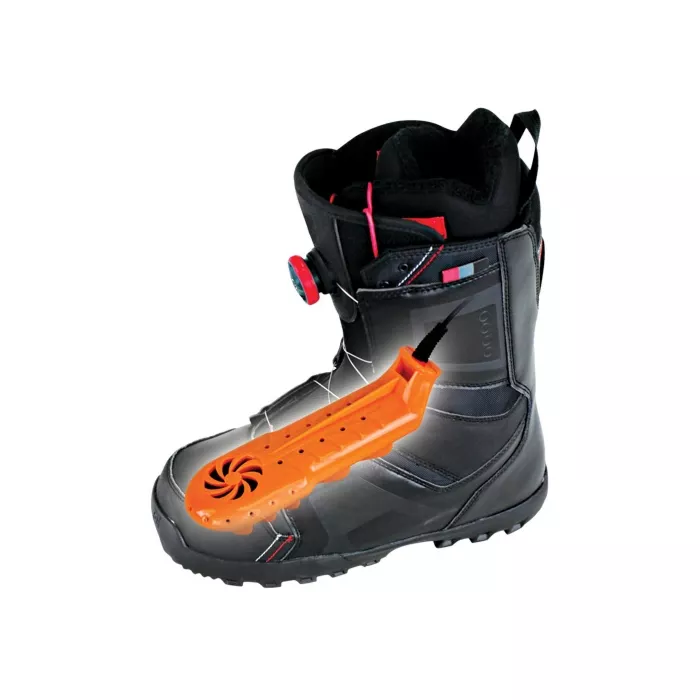 - A fan draws fresh air over the heating elements, venting warm air throughout the toe box and removing any moisture