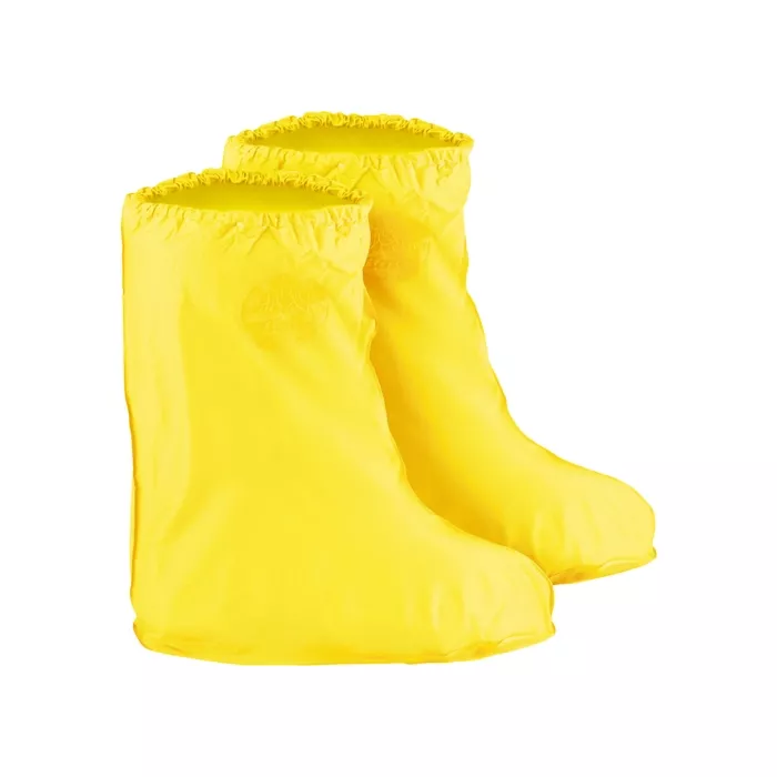 - Made of a strong 0.20 mm PVC upper, heat-welded to a hard, embossed 0.50 mm PVC sole for superior slip resistance. Completely waterproof, equipped with an elastic top for easy pullover comfort and a secure snug fit. 100% waterproof.