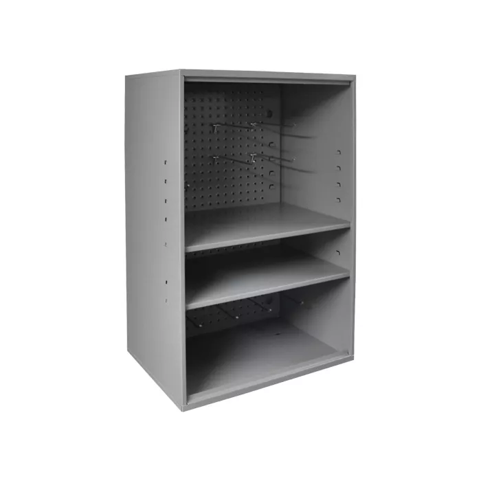 - Features 2 adjustable shelves and keyhole slots in the back of the unit for wall mounting