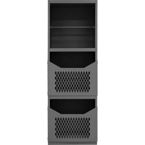 - Includes 2 shelves and 3 compartments (2 with front covers)