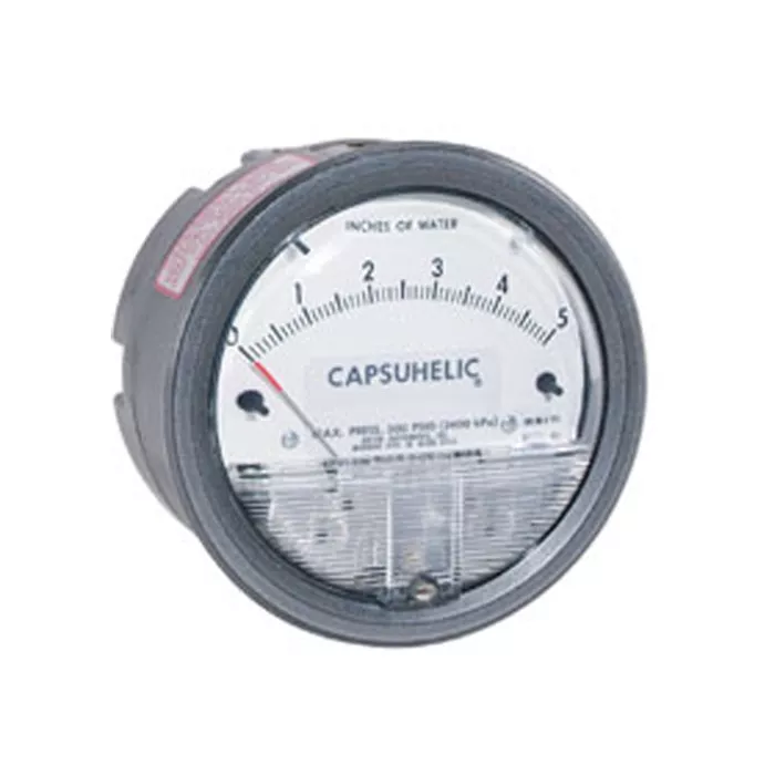 - The pressure being measured is held within a capsule which is an integral part of the gauge, permitting the use of the gauge on system pressures of up to 500 psig, even when differentials to be read are less than 0.1 in. w.c.