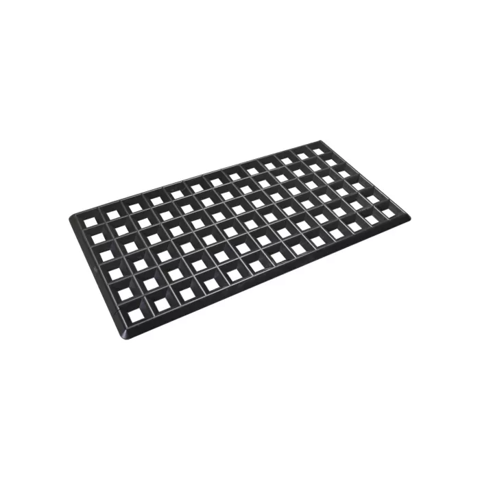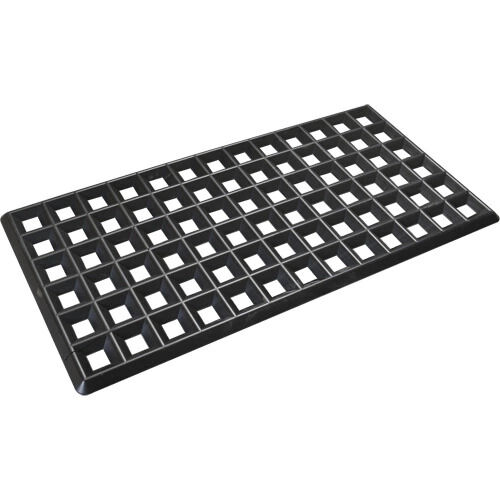 - Durable grates help keep drums and other objects above spills