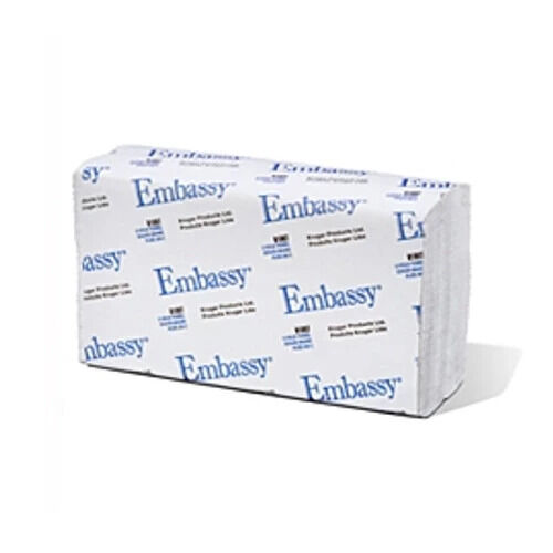The Embassy Multifold Paper Towel is designed for efficient and hygienic hand drying in various settings. These paper towels measure 9x9.5 inches and are made from high-quality materials to ensure durability and absorbency. Each case contains 12 packages, making it a practical and economical choice for high-traffic areas such as restrooms, kitchens, and public facilities.