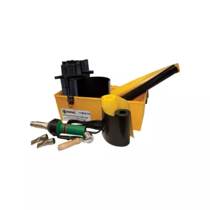 - Contents:; 1Leister professional heat gun; 1 XR material 1 sq. yd. (black); 1 PVC material 1 sq. yd. (yellow); 4 Replacement berm stays; 5 Peel and stick berm patches; 1 Rubber brayer roller; 1 Cutting knife; 1 Locking tool box