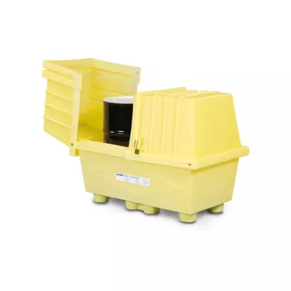 - Hinged, gull-wing covers provides convenient, safe access for decanting and removal of drums