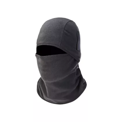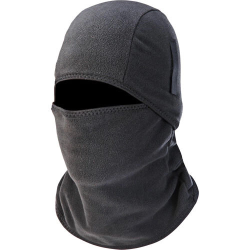 - Two-piece polyester fleece construction with face mask attached by hook & loop