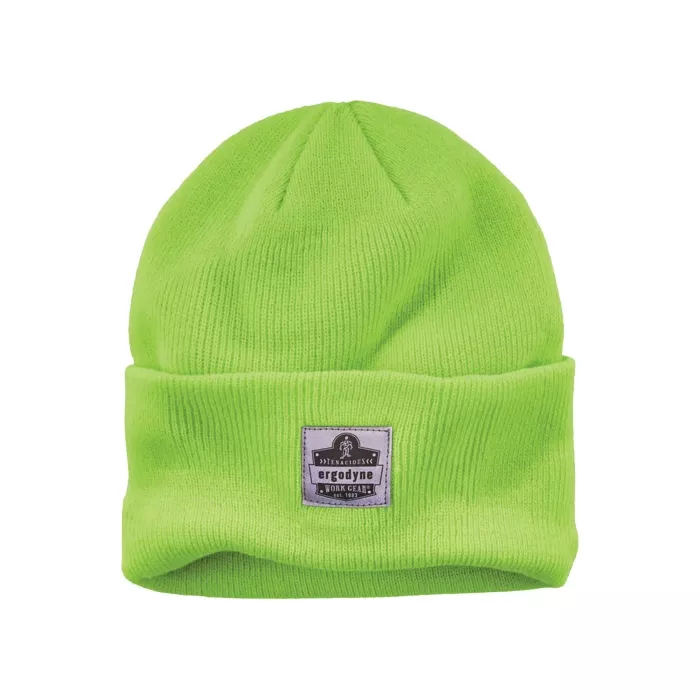 Ergodyne N-Ferno® Rib Knit Beanie Hat, Acrylic, Unlined, High-Visibility Lime Green, One Size (16806)