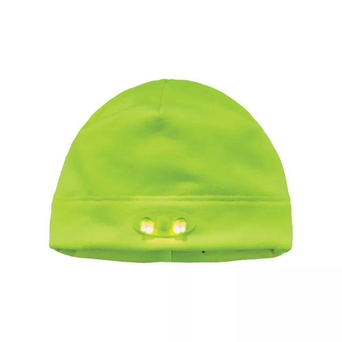 Ergodyne N-Ferno® Skull Cap Beanie Hat with LED Lights, Fleece, Unlined, High-Visibility Lime Green, One Size (16802)