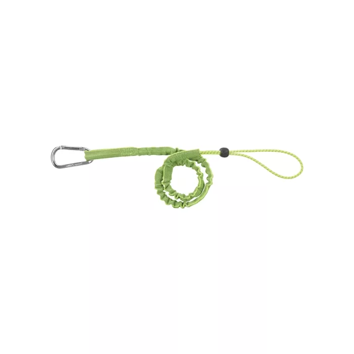 - Nylon tubular elastic material stretched to allow flexibility in use and to help absorb the impact of a dropped tool