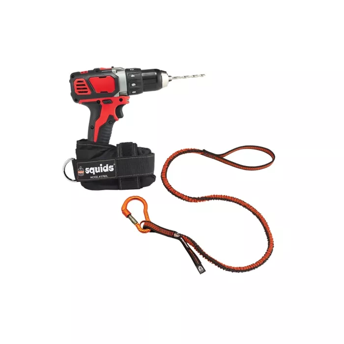 - Includes: Squids® 3100F(x) Single carabiner tool lanyard, Squids® 3780L Power tool trap