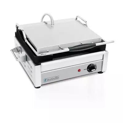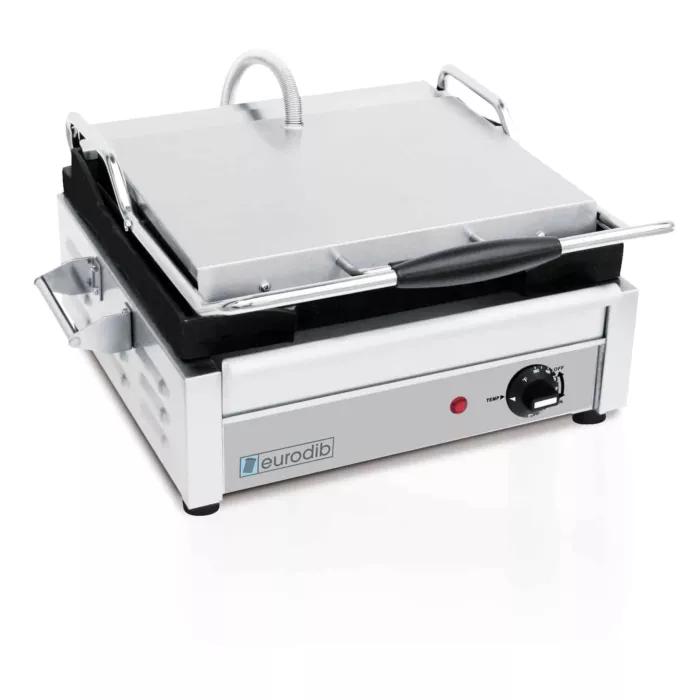 Eurodib Panini grills are commercially built for the demands of restaurants and cafes. Heavy duty in construction, through the use of stainless steel and machined finished cast iron cooking plates.