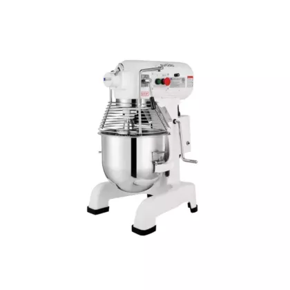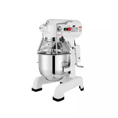 Professional planetary mixer for mixing and emulsifying. Planetary-mixing action ensures perfect results. All the spare parts for the bowl, hook, whip, beater are made of stainless steel. Heavy duty and abrasion resistant transmission design.