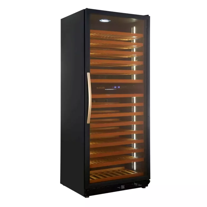 Elevate your wine storage experience with Eurodib 29" Dual Zone Wine Cooler with 170 Bottle Capacity & 1 Glass Door, a perfect blend of luxury, innovation, and functionality. Designed for discerning wine enthusiasts, this sophisticated wine cabinet features dual-zone storage for optimal preservation of different wine varietals, ensuring they are kept at their ideal temperatures.