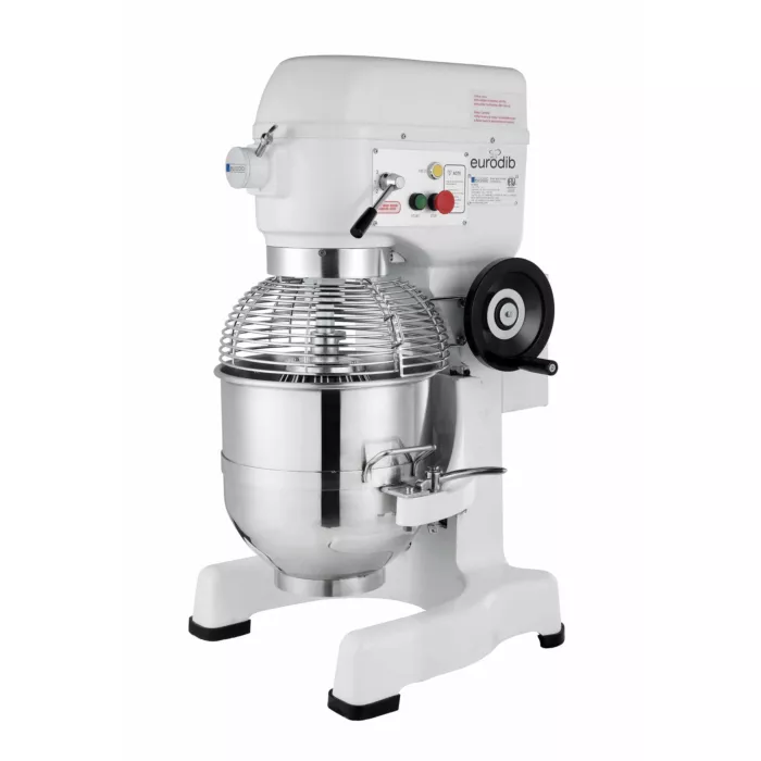 Professional planetary mixer for mixing and emulsifying. Planetary-mixing action ensures perfect results. All the spare parts for the bowl, hook, whip, beater are made of stainless steel. Heavy duty and abrasion resistant transmission design.