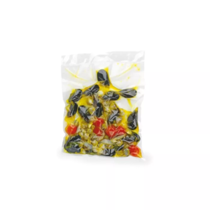 Contents of vacuum bag can be cooked in boiling water. Suitable for chamber machines. Bags contain no phthalate plasticizer, adipates, bisphenol A, phosphates, polyester.