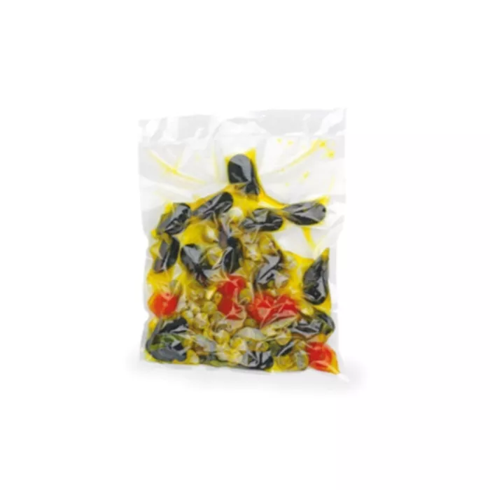 Contents of vacuum bag can be cooked in boiling water. Suitable for chamber machines. Bags contain no phthalate plasticizer, adipates, bisphenol A, phosphates, polyester.