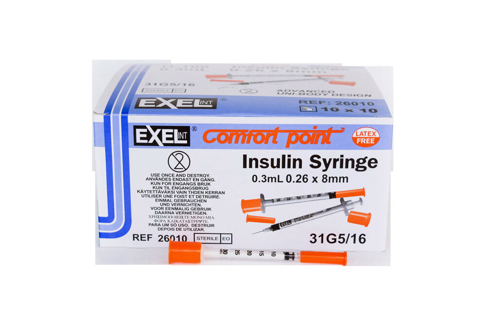 Exel presents a line of Comfort Point 0.3cc Lo-Dose Insulin Syringes With Permanently Attached Needles. Features include a reduced dead space for reduced medication waste, and smooth plunger action for greater filling accuracy. Syringes are packaged in 10 packs.