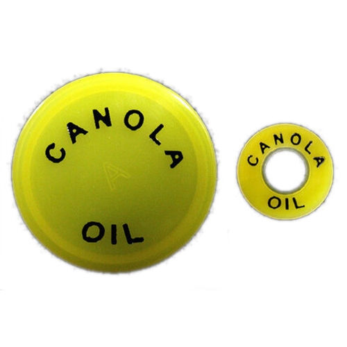 Labelled sauce and dressing cap and disc for FIFO bottles.