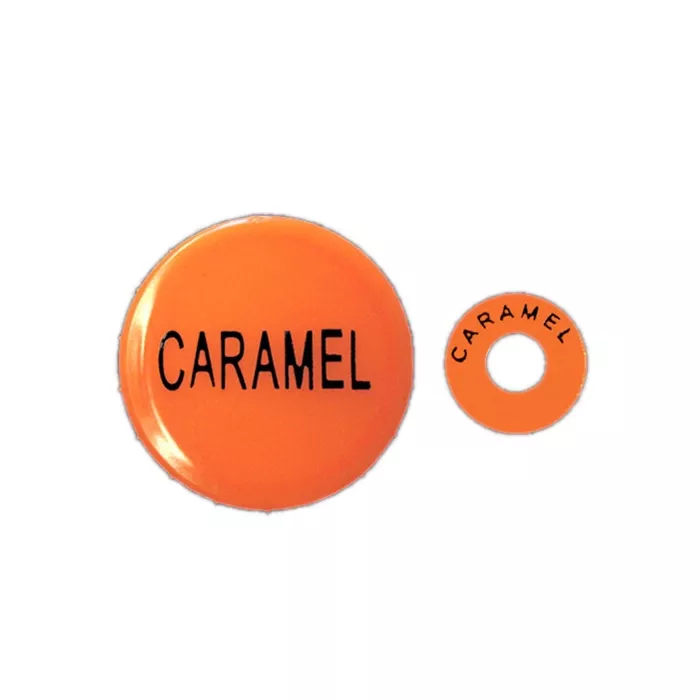 Labelled sauce and dressing cap and disc for FIFO bottles.