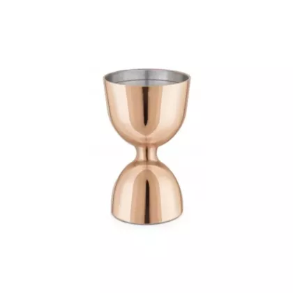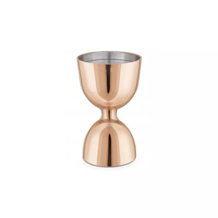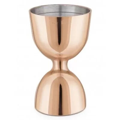 Quickly measure out liquor for cocktails with this double ended copper plated jigger. Just turn over for different measurements from 1oz to 2oz and easily measure other increments with the stamped markings in oz & ml. The stainless steel construction provides long lasting durability. 2 Oz capacity.