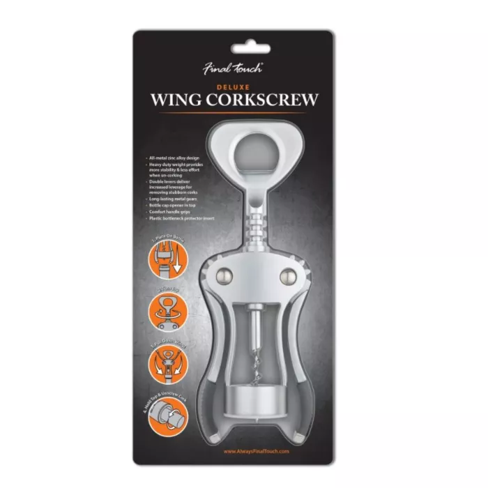 The double levers with comfort grips deliver increased leverage for removing stubborn corks and the heavy duty weight provides more stability & less effort when uncorking. All-metal zinc alloy design with long-lasting metal gears give increased durability.