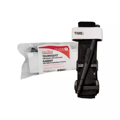 - Features a plastic stick & buckle for faster application, decreased blood loss, & fewer windlass turns