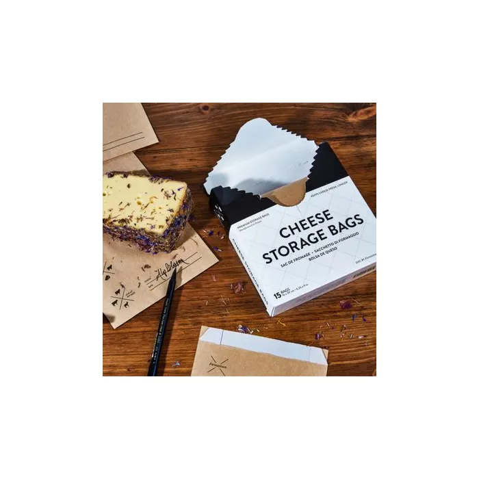 Cheese storage bags maintain freshness and flavor longer—all in a quick, easy-to-use bag. The material is porous enough to let cheese breathe while retaining ample humidity to prevent it from drying out. Reuse the same bag for the same type of cheese until butterfat stains become visible on the paper, then switch it out for a new one. Made in France and designed for cheese storage, bags are perfect for quick cleanup of leftovers and make a great gift for cheese lovers.