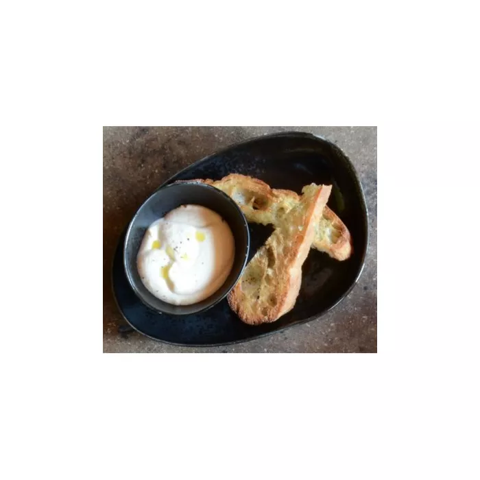 Durable - high temperature porcelain in an oval organic shape - with a colorful reactive glaze.