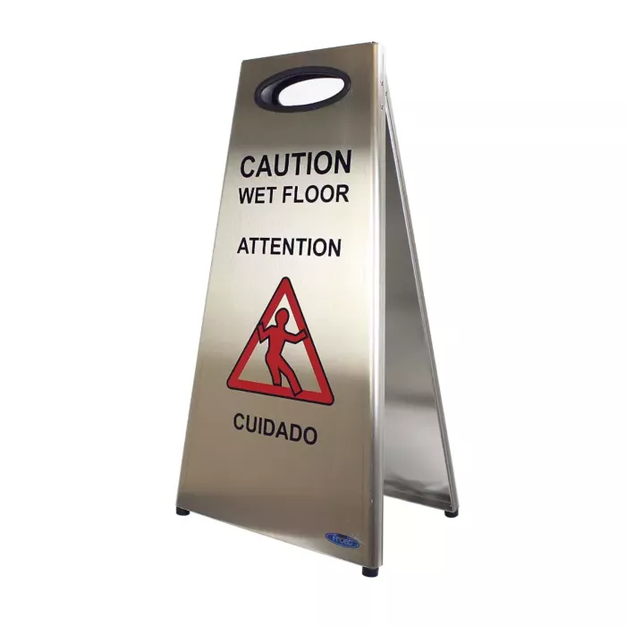 Made in North America with durable type 304 stainless steel, Frost's 1119 was built to last. Engineered for crowded areas, Frost's 1119 thrives in harsh indoor and outdoor environments. Due to its quality and durable construction, this sign is rarely knocked over in crowds or blown over by the wind. For high traffic areas requiring quality, durability and style, Frost's stainless steel wet floor sign is an ideal solution.