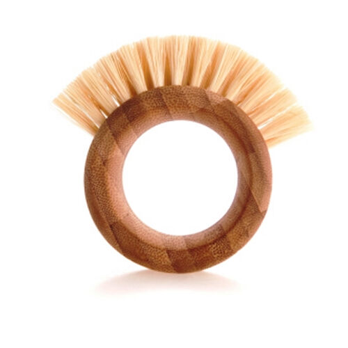 Vegetable Brush, natural and recycled bristle blend with bamboo handle. Tough enough to remove dirt, yet soft enough not to bruise. Doubles as a nail cleaning brush.