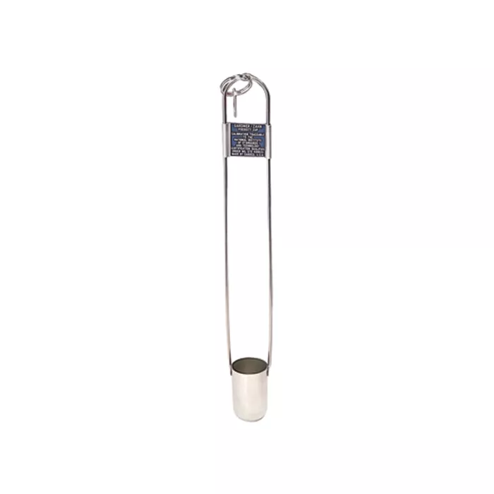 - Conically shaped steel cup delivers 44 cc's of liquid sample through a precision orifice