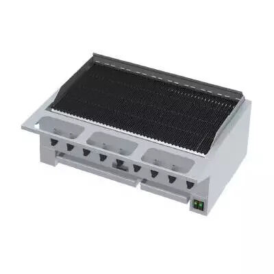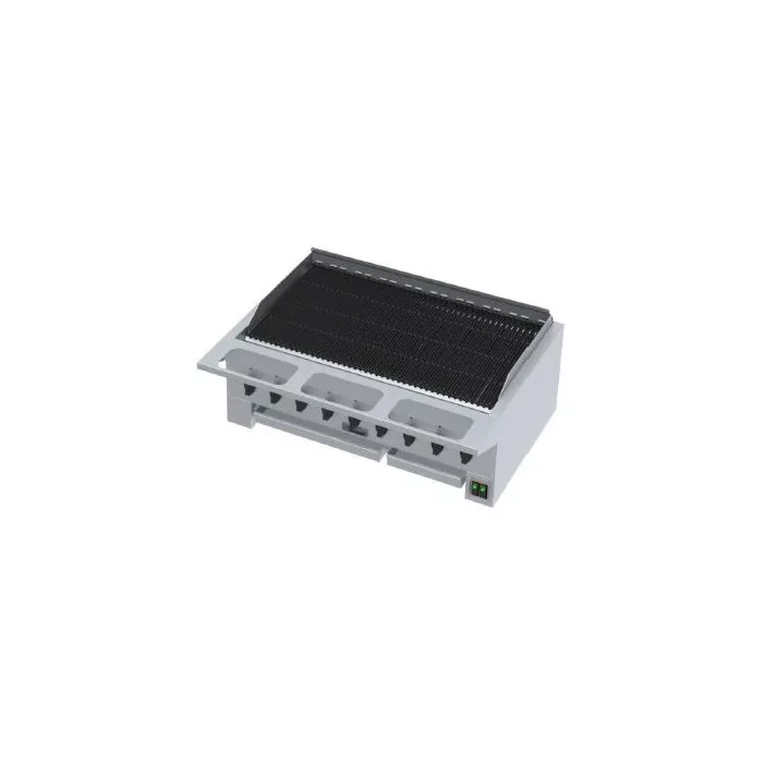 Heavy duty removable cast iron grates, reversible with wide brand edge on one side & fine edge on the other.