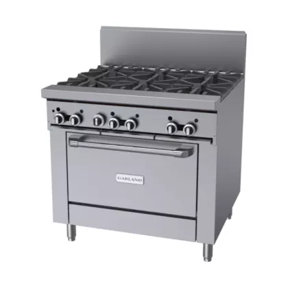G Series Starfire Pro Range Gas restaurant series range with large capacity standard oven Total flame failure protection for all burners. Stainless steel front, sides and 5" wide front rail. 6" legs with adjustable feet.