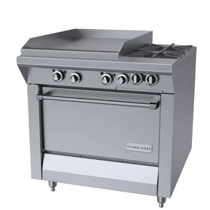 - Thermostatically controlled griddle, (450° F max.) on left with embedded capillary line sensors