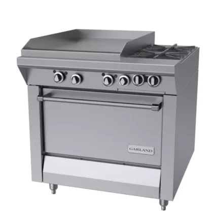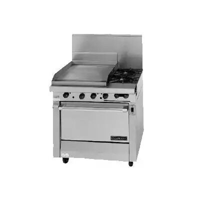 - 1" (25mm) thick steel griddle plate & two 33,000 BTU (9.67kW) “H” burners