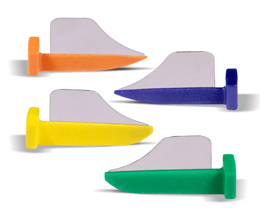 Conservative Class II preps are great for saving tooth structure, but can make the placement of your Composi-Tight® sectional matrix bands difficult. FenderWedge® will lend you a hand by "pre-separating" the teeth while you prepare the tooth. When the prep is done, remove FenderWedge® and slide your Composi-Tight® band into place.