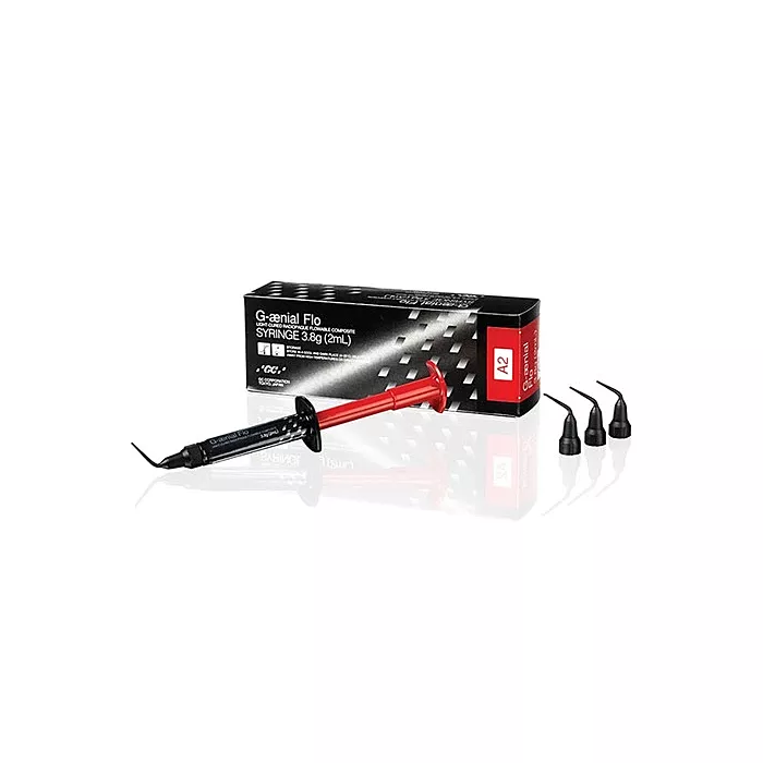 The GC G-aenial Flo Flowable Composite is a versatile and high-performance dental material designed for a wide range of restorative procedures. This 3.8-gram syringe in shade A2 offers excellent aesthetics and superior handling properties. The G-aenial Flo composite is known for its easy flowability, high radiopacity, and strong physical properties, making it ideal for precise and durable restorations. The advanced formulation ensures minimal shrinkage and high polishability, providing long-lasting and visually appealing results.