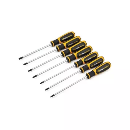 - Includes: T10 x 6" Torx® dual material screwdriver, T15 x 6" Torx® dual material screwdriver, T20 x 6" Torx® dual material screwdriver, T25 x 6" Torx® dual material screwdriver, T27 x 6" Torx® dual material screwdriver, T30 x 6" Torx® dual material screwdriver, T40 x 6" Torx® dual material screwdriver