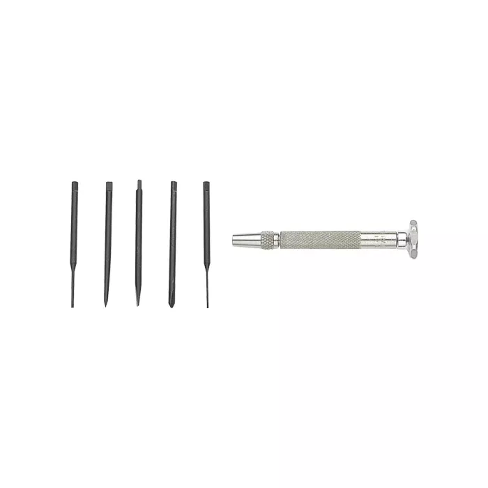 - Includes: (1) Vinyl case, (1) 0.1" slotted blade, (1) 0.07" slotted blade, (1) 0.055" slotted blade, (1) 0.04" slotted blade, (1) #0 cross-point blade