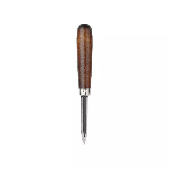 - Hardened and tempered triple-edge blade is secured in wood handle by steel ferrule