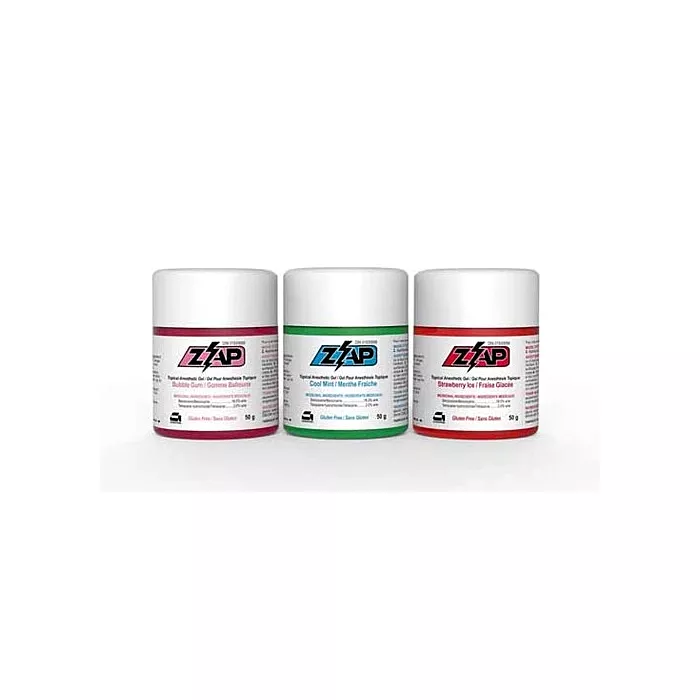 The Germiphene ZAP Topical Anesthetic Gel Strawberry Ice 50mL (Part number GERM-ZAP-ST) is designed to provide quick and effective temporary relief of oral pain during dental procedures. This topical anesthetic gel contains 20% benzocaine, delivering powerful numbing action to reduce discomfort associated with injections, impressions, and other dental treatments. The strawberry ice flavor offers a pleasant experience for patients, making the treatment process more comfortable. The gel is simple to apply, ensuring targeted relief and allowing dental professionals to perform procedures with minimal patient discomfort. This product is essential for enhancing patient comfort and ensuring a smooth dental experience.