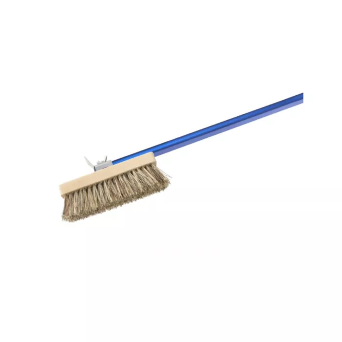 Professional brush with natural fibre bristles and rear stainless steel scraper.