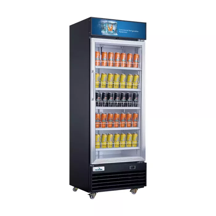 The Glacier 29" Merchandiser Refrigerator with 1 Glass Door is designed to showcase a wide variety of merchandise. The merchandiser chills products while offering a stylish display.