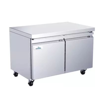 The Glacier GUF-48 48" Undercounter Freezer with 2 Solid Door has a generous capacity and all over brushed stainless steel construction for a durable modern look. Digital temperature controls and LED display lets you precisely pick the desired temperature. Designed with a bottom mounted compressor for efficiency. Included are multiple adjustable and removable wire shelves.