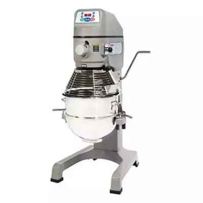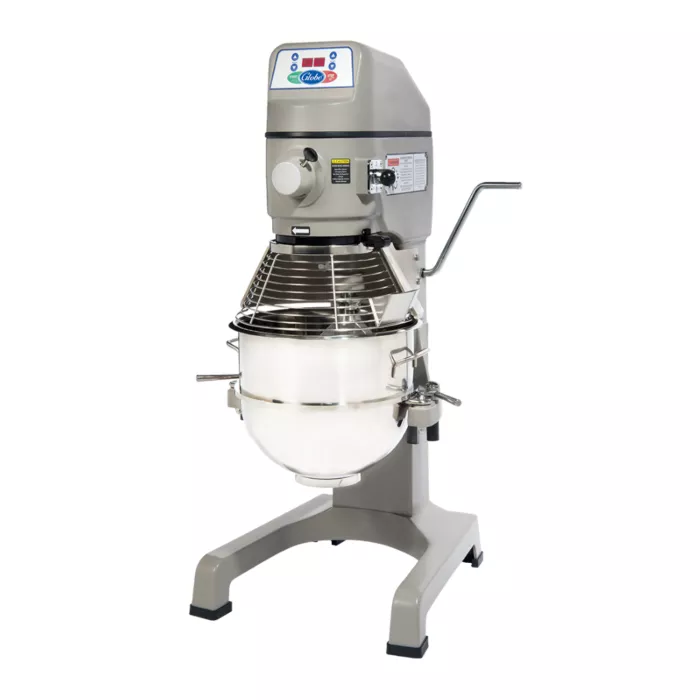 A high torque transmission with heat treated and hardened steel gears and shafts easily mixes all types of products and improves reliability. The mixer's rigid cast iron body ensures years of mixer durability. This mixer comes complete with an 30 quart stainless steel bowl, flat beater, wire whip, and spiral dough hook.